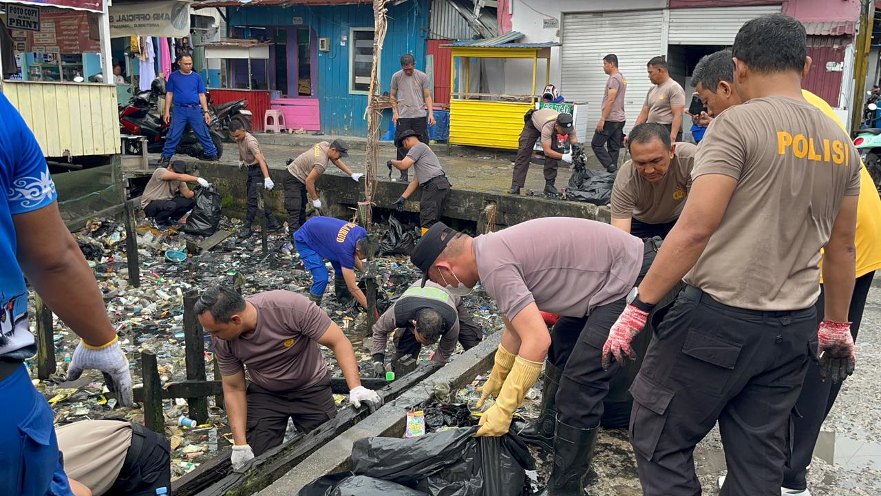 Selama pelaksanaan kurvey, personel Polres Tarakan bersama unsur terkait melakukan pembersihan area pesisir dan lingkungan sekitar permukiman warga.